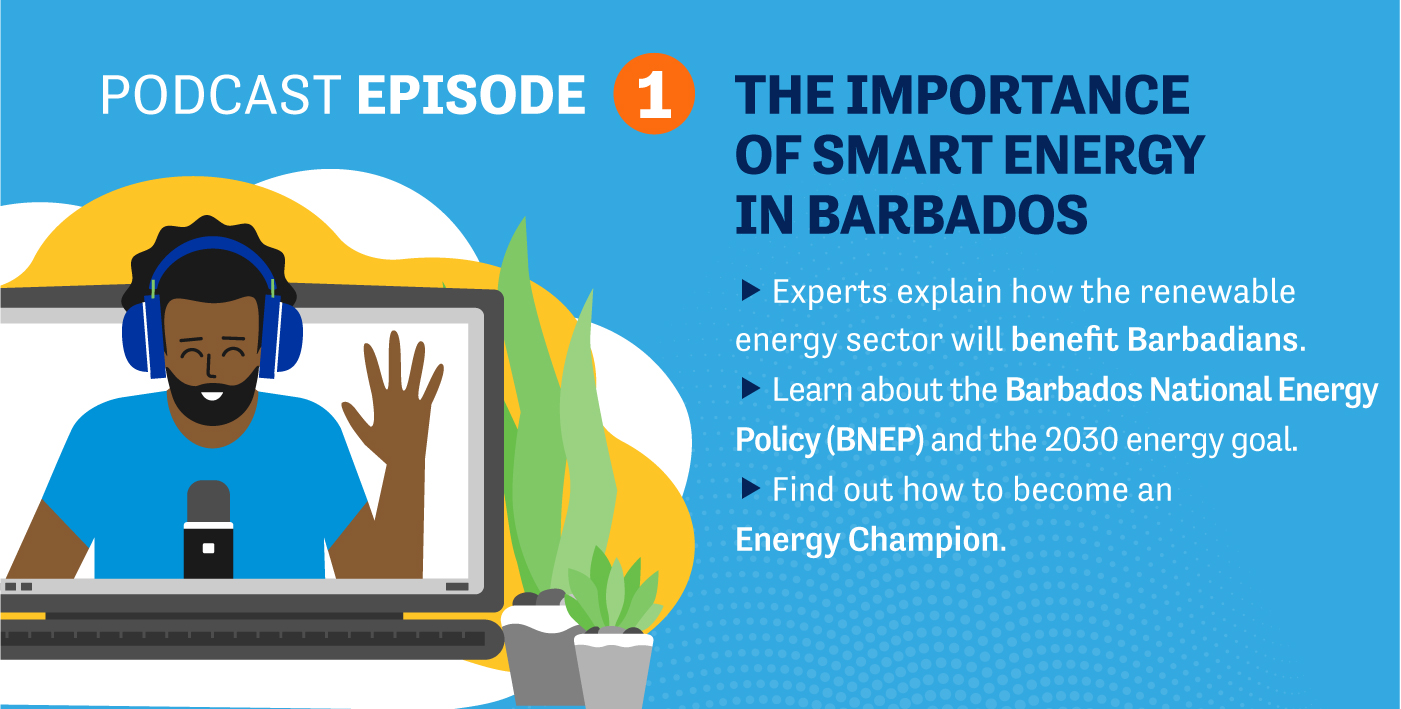 By 2030, Barbados will be powered by 100% clean, renewable energy. This is the goal set by the Barbados National Energy Policy (BNEP). What is BNEP? How will we accomplish its ambitious goals? How will renewable energy benefit everyone in Barbados? Find out the answers to these questions and more during the Smart Energy Podcast Series. Listen to hostess Tracy Fowler and her expert guests, including the Honourable Kerrie Symmonds, as they discuss topics related to smart energy.